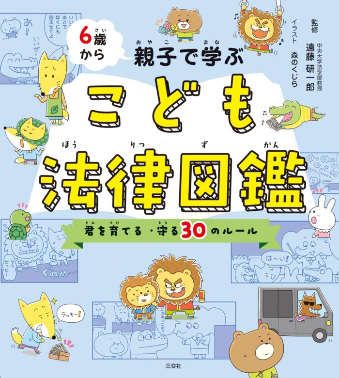 幼児から小学生低学年向けの法律に関する一冊です。子供をしつける際に悪いことを教えるのに使えます。読み聞かせで使っても面白いですよね。動物のキャラクターで解説しているため、読んでいてなごめます。