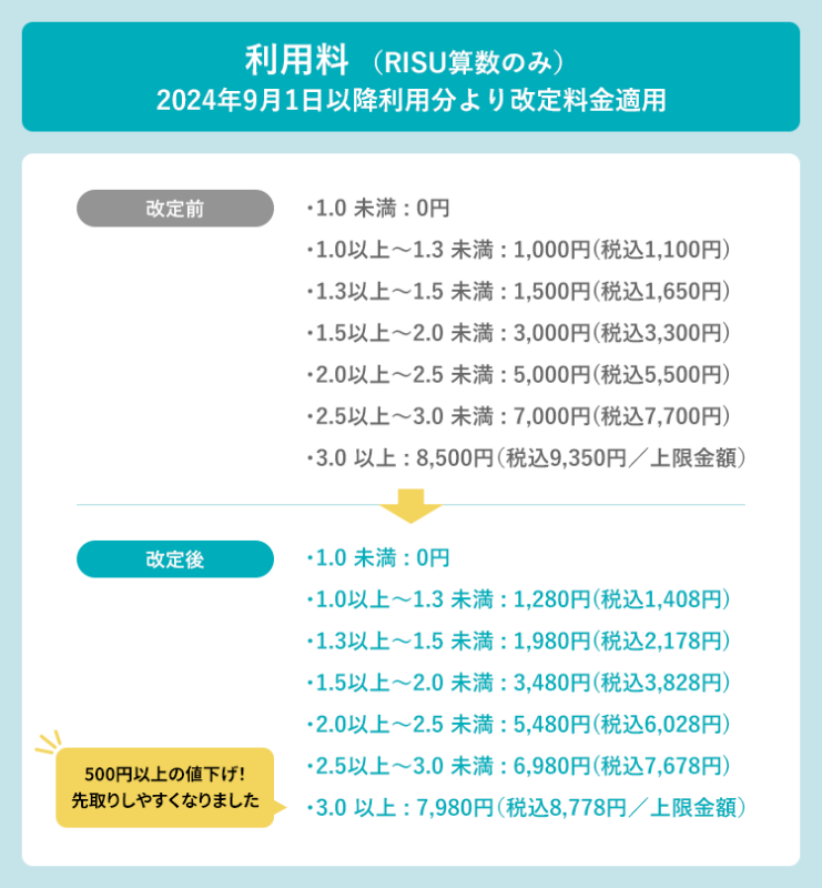 そしてRISUきっずは別途利用料金がかかります。詳細は下記画像。