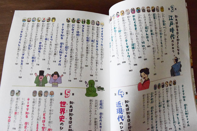 時代ごとに歴史のひみつが分けられています。最後の章では日本史ではなく世界史を紹介。基本的には日本史なので、世界史のひみつが知りたい人にとっては残念な構成かもしれません。