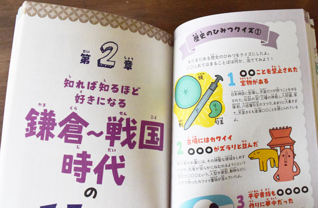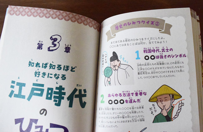 章の終わりには歴史のひみつクイズを掲載。その時代の問題をクイズ形式で確認することができます。